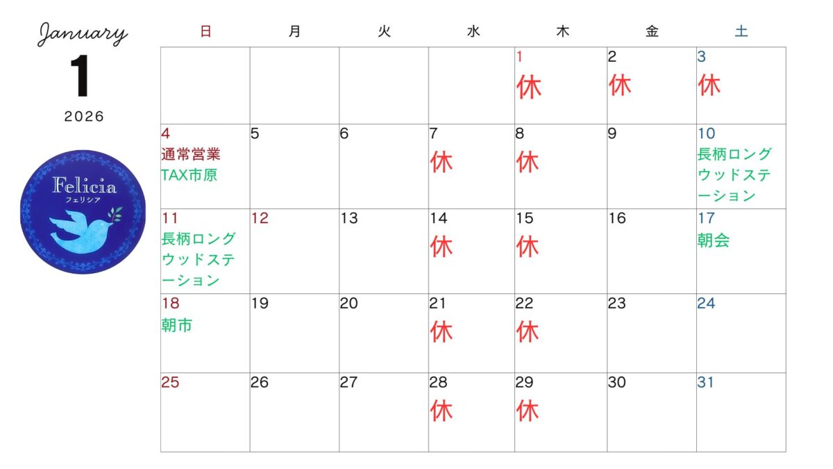 1月のイベント予定 2026 1/03 1/4 TAX市原様にて新年祭イベント出店します。 1/10、11 長柄ロングウッドステーションでワンコのイベントにお手伝い出店します。10,11日(土、日)は人員不足のため店舗営業はお休みいたします。 From the Café